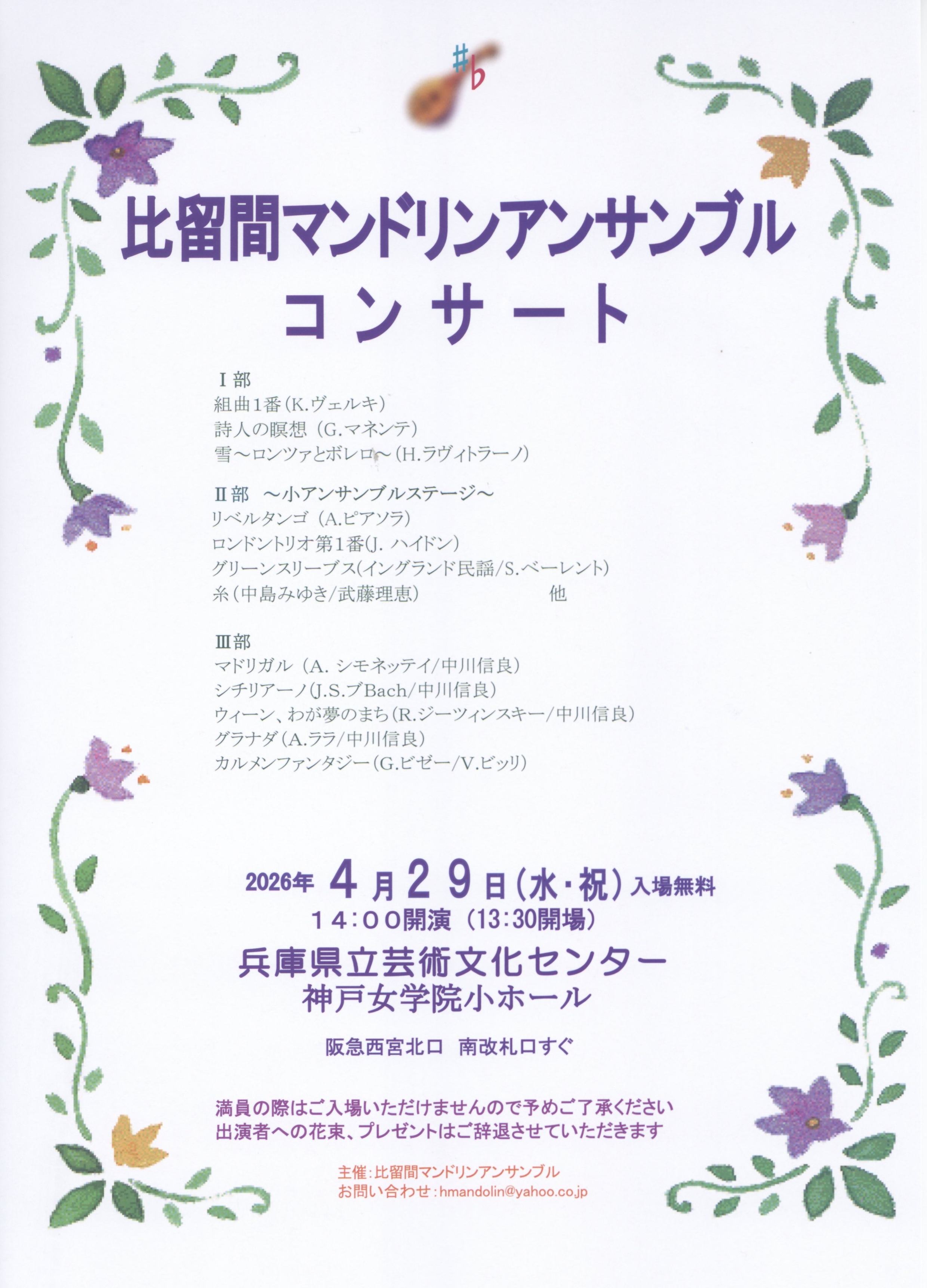 Venue: HPAC Recital Hall Curtain rises at: 14:00 ( Doors open at: 13:30 ) Ticket prices: A 4,000Yen/B 3,000Yen Ticket sale dates: Jan. 18, 2026