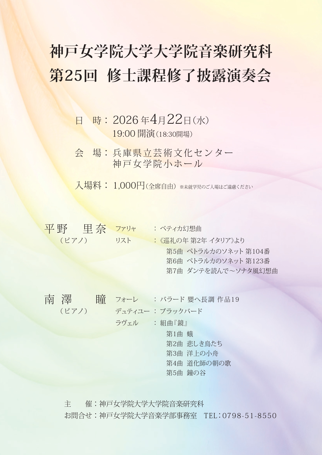 Venue: HPAC Recital Hall Curtain rises at: 19:00 ( Doors open at: 18:15 ) Ticket prices: Reserved seats 5,000Yen Ticket sale dates: Nov. 1, 2025