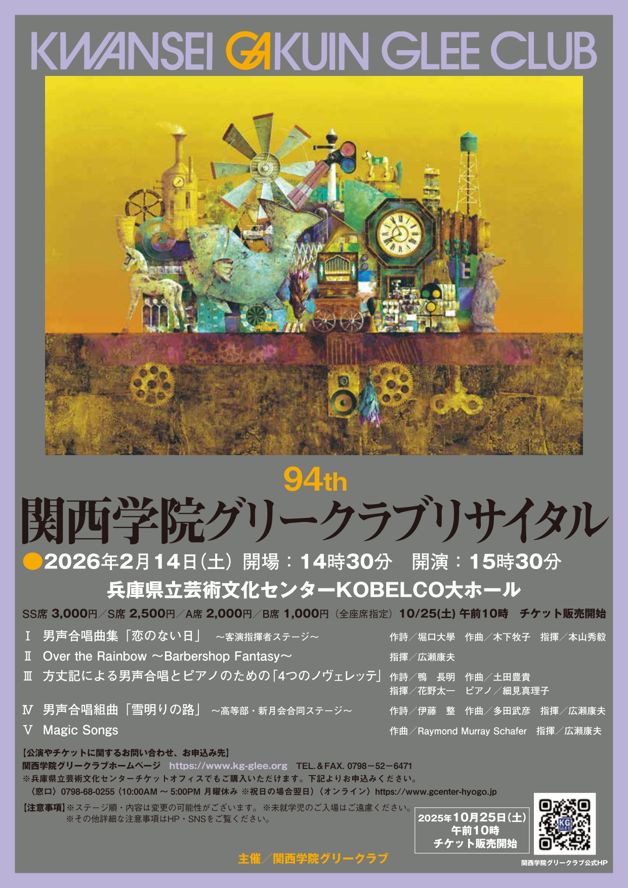 Venue: HPAC Grand Hall Curtain rises at: 15:30 ( Doors open at: 14:30 ) Ticket prices: SS 3,000Yen/S 2,500Yen/A 2,000Yen/B 1,000Yen Ticket sale dates: Oct. 25, 2025